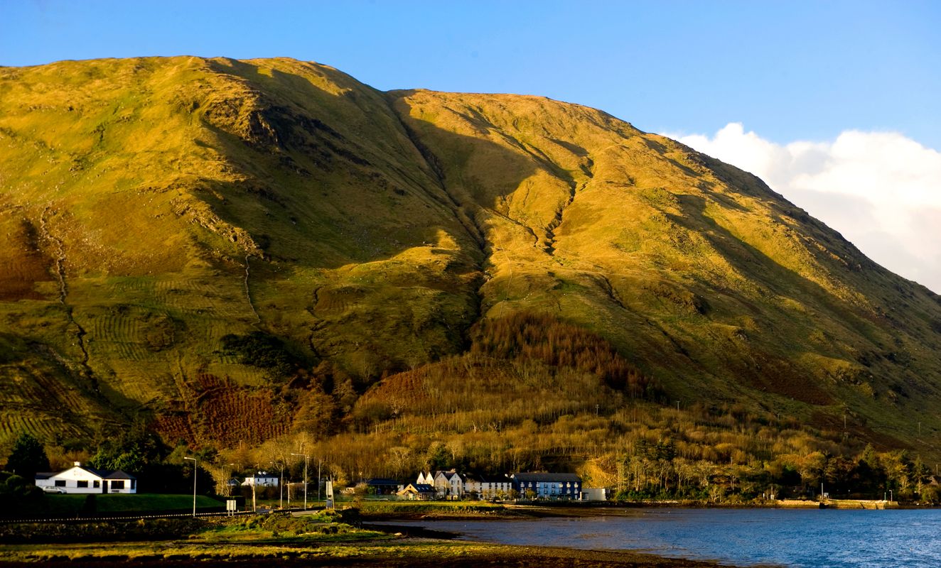 Head towards South Connemara into Gaeltacht areas like Camus and Screeb, and admire the breathtaking Screeb Waterfall. As you journey through this region, you'll have the opportunity to see anglers' huts on small islands dotting the beautiful lakes.